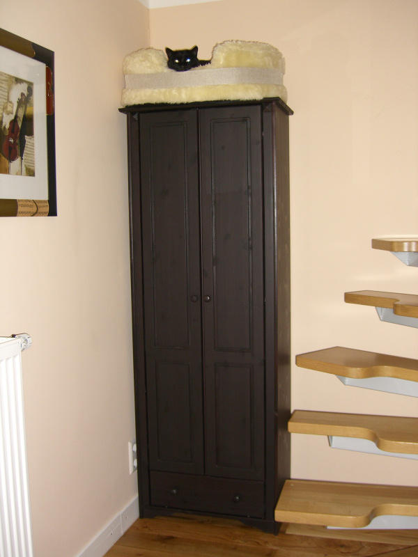 a poobiednie drzemki uskutecznia w (ukochanym) legowisku w kształcie miski umieszczonym na szafie: